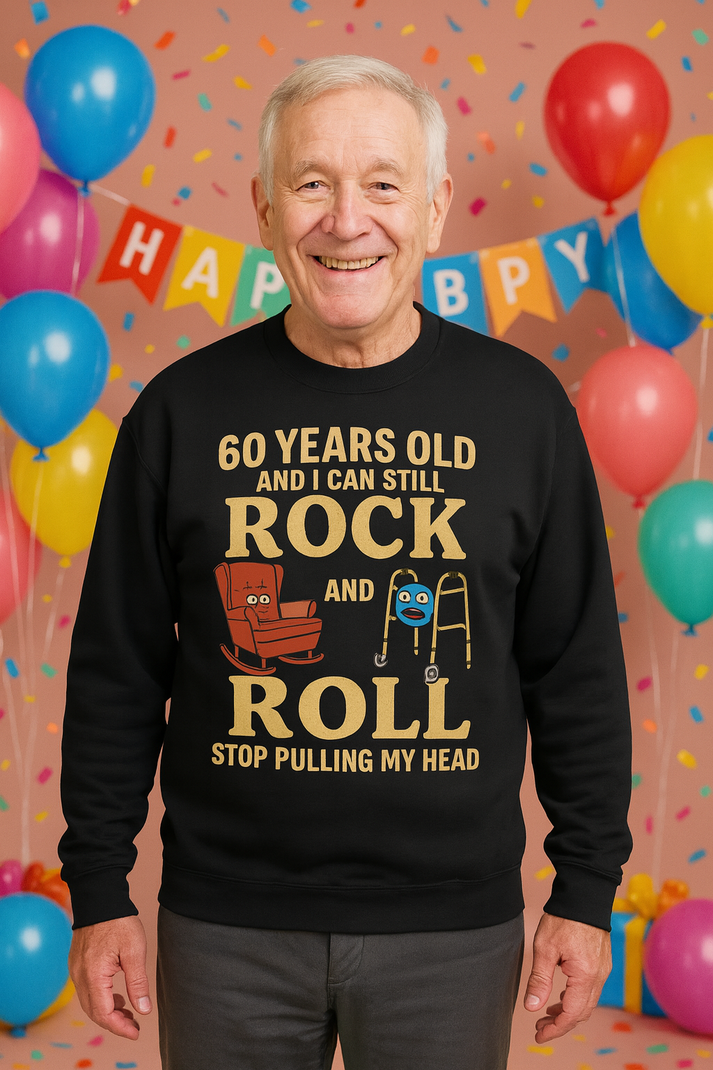 60 Years Old I Can Still Rock and Roll Sweatshirt | Funny Retirement Humor, Diseños Originales.