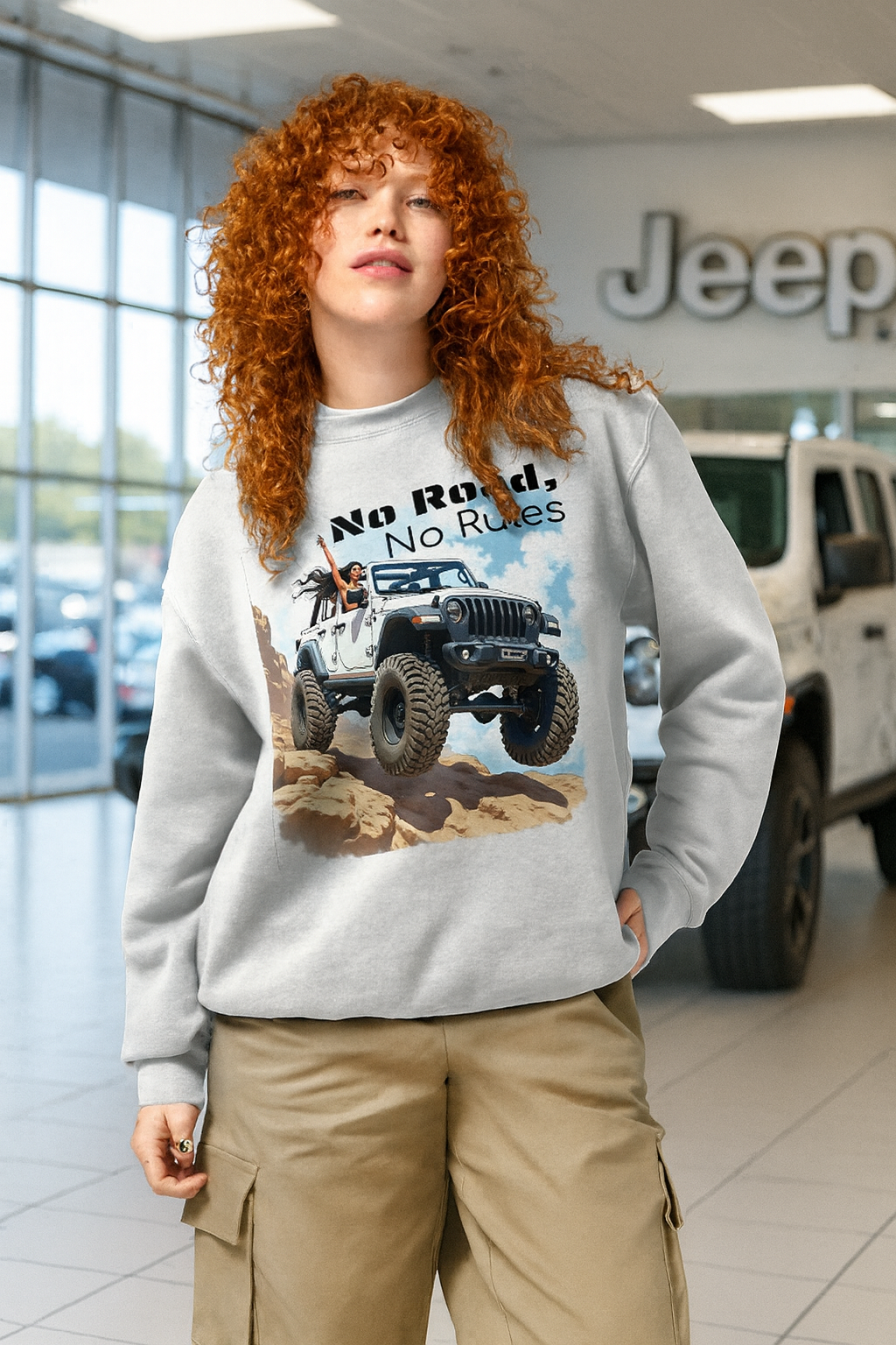 Sudadera sin capucha, playera moderna, No Road, No Rules, un diseño para los amantes del 4 x 4 y de la marca Jeep
