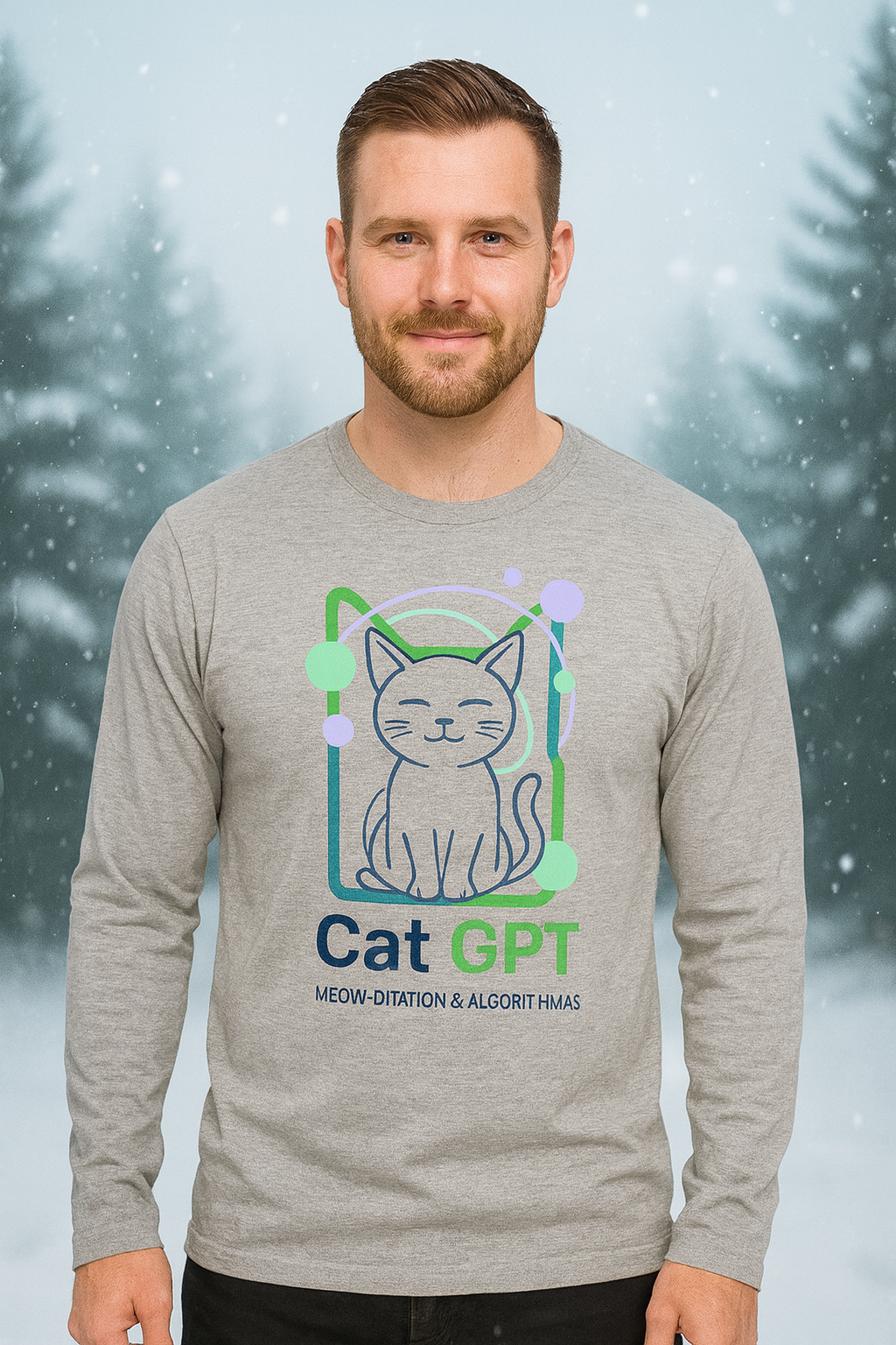 Cat GPT cat illustration Long Sleeve Tee | AI cat design, neon accents